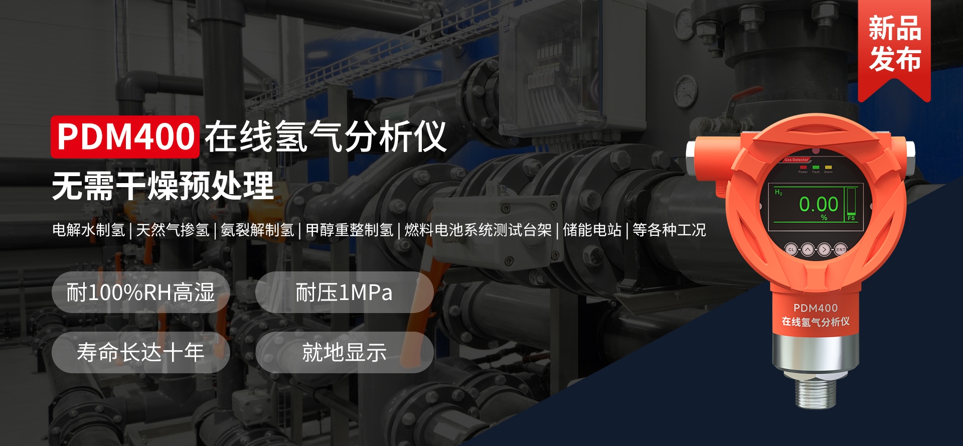 電解水、天然氣、氫分裂制氫,輸氫管道、氫氣置換,制氫站、加氫機(jī)、卸氣柱、撬裝站、氫燃料電池汽車及系統(tǒng)測(cè)試臺(tái)架、熱電聯(lián)供、氫滲氫實(shí)驗(yàn)室、涉氫生產(chǎn)廠房、氫氣氣瓶間等場(chǎng)合中的氫氣濃度、純度、濕度檢測(cè)。