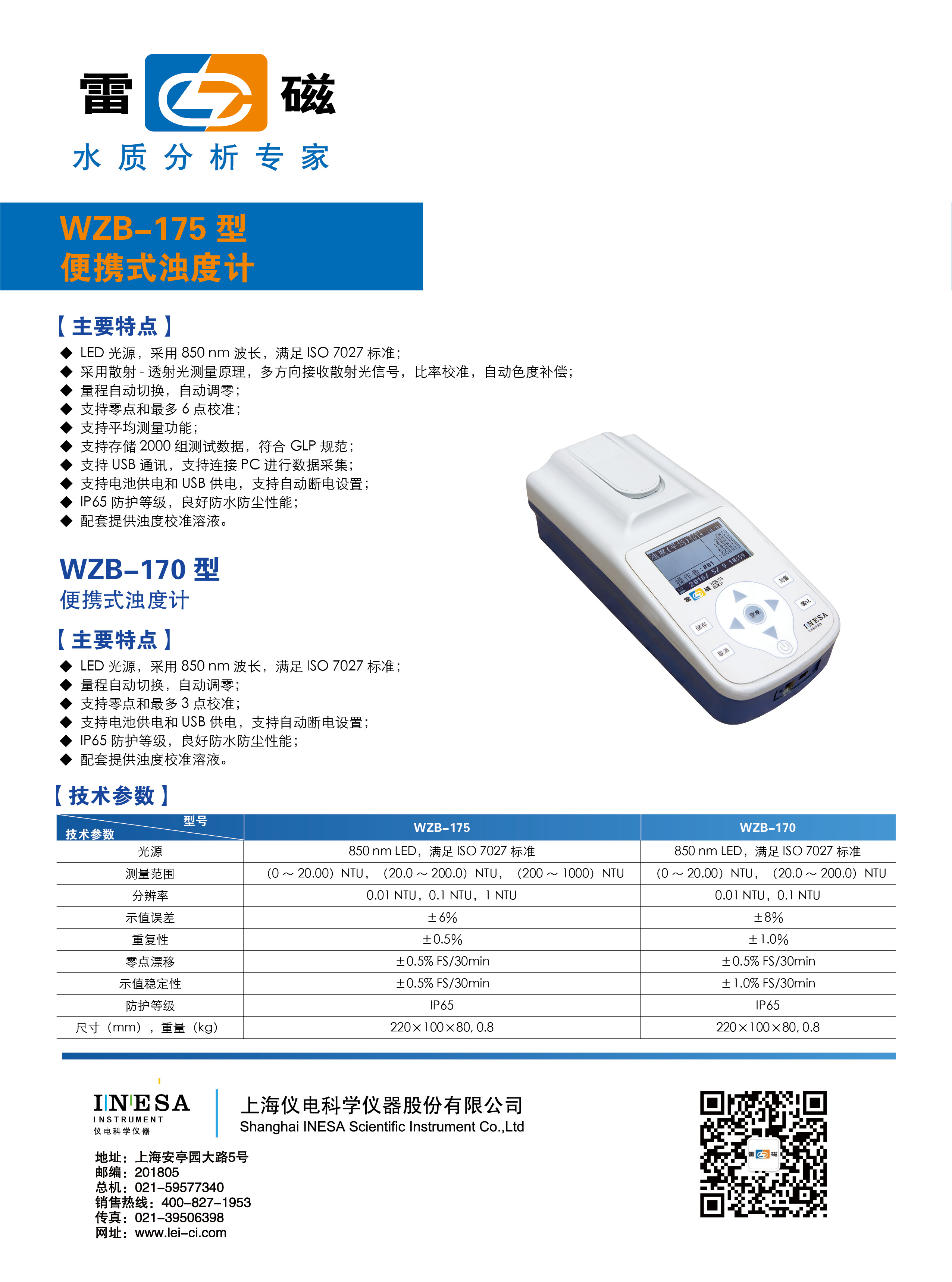 上海雷磁便攜式濁度計(jì)WZB-175型