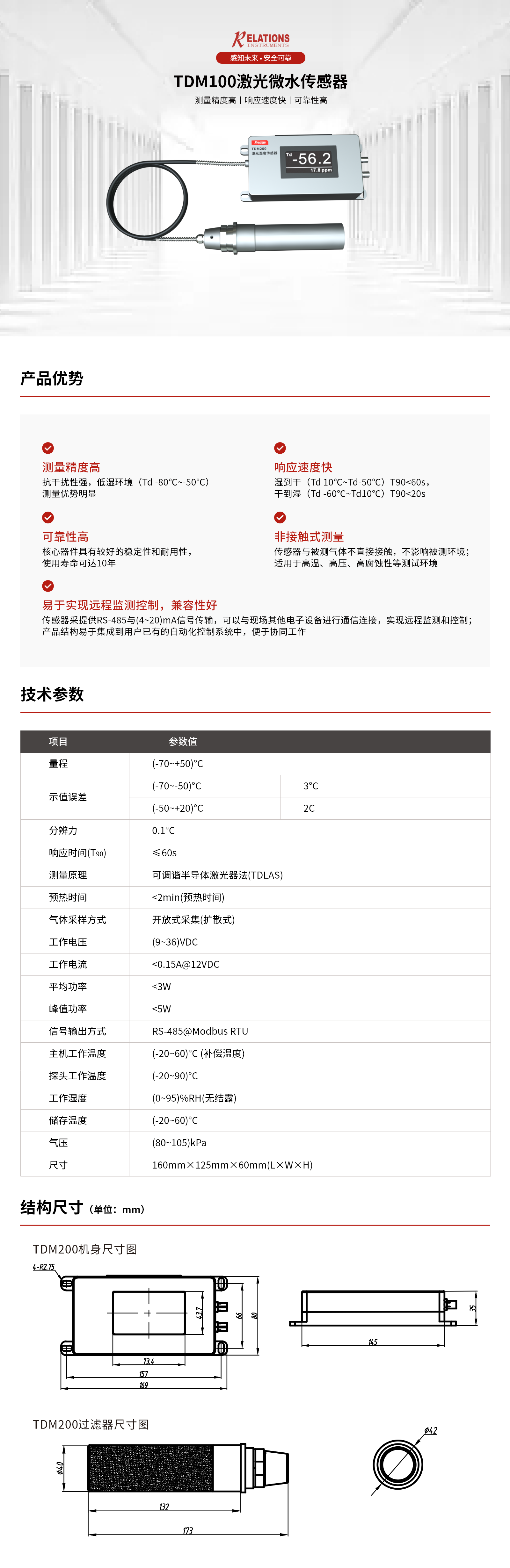 TDM200激光濕度傳感器是我公司研制生產的一款開放式在線微水檢測裝置,該裝置采用可調諧半導體激光吸收光譜(TDLAS)技術原理進行非接觸式測量,對特定氣體具有高度的選擇性,基本不受其他氣體成分(尤其是腐蝕性氣體)的干擾。